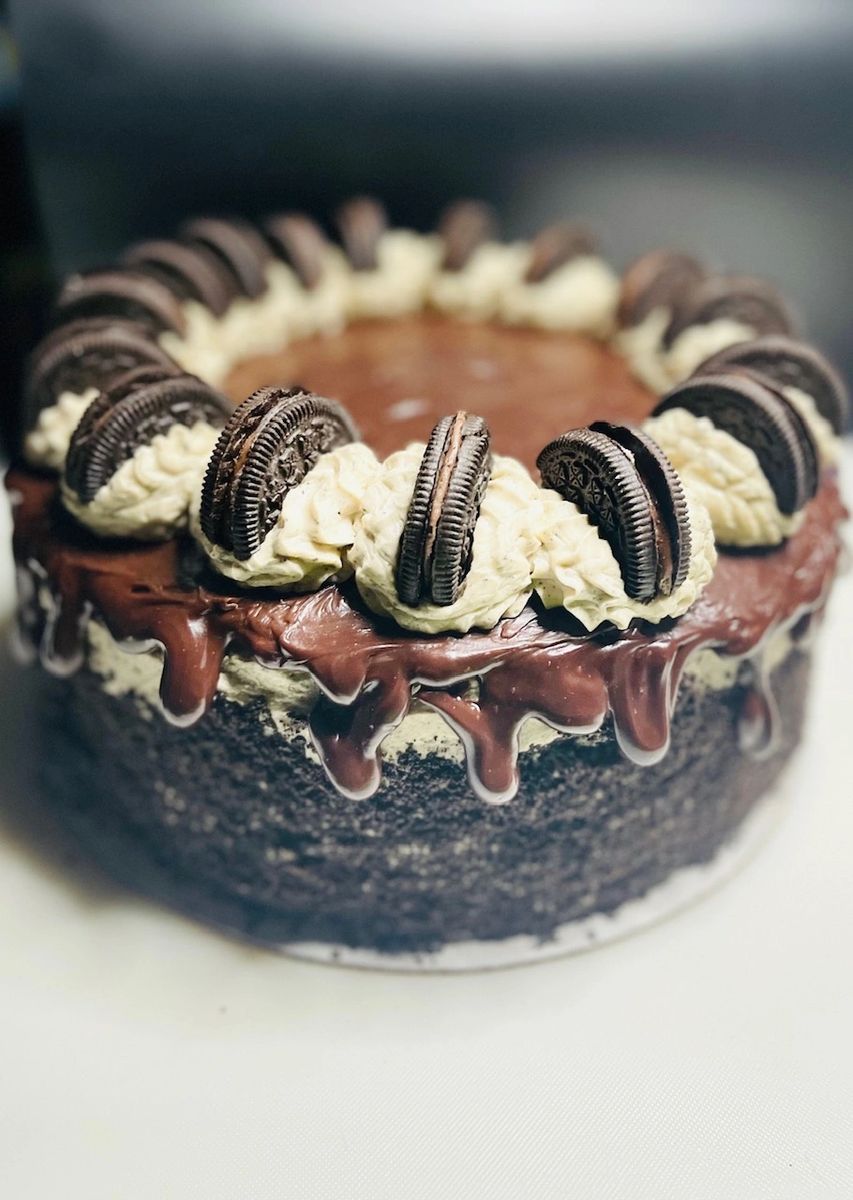 HEB Cookies Cream Ice Cream Cake with Chocolate Cake Oreo Icing 8 in.